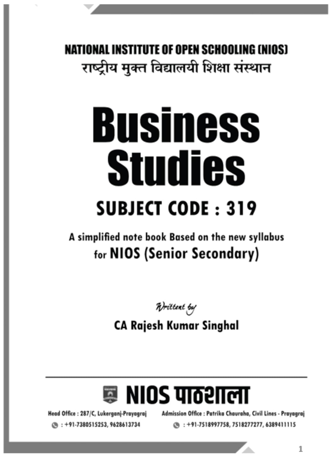 Master Business Studies for NIOS Class 12 with this comprehensive guidebook aligned with the latest syllabus (Subject Code: 319). Written by an experienced Chartered Accountant, this simplified note book breaks down complex business concepts into easily digestible content. The book is specially designed to help students grasp fundamental business principles, accounting concepts, and management theories required for the senior secondary level. Perfect for both self-study and classroom use, it follows the NIOS curriculum structure while presenting topics in a clear, systematic manner. Available at ₹450, this study material serves as an invaluable resource for students preparing for their Class 12 examinations. The book is accessible through multiple platforms including Amazon and Flipkart, making it convenient for students across India to enhance their business studies knowledge. Whether you’re studying remotely or attending regular classes, this guide provides the essential framework needed to excel in your business studies course.